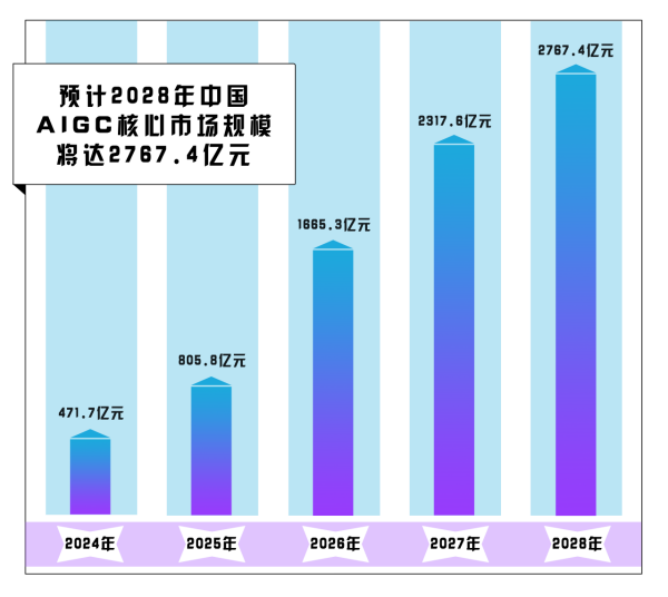 艾媒咨詢發(fā)布的《2023年中國AIGC行業(yè)發(fā)展研究報告》顯示,2024年我國生成式人工智能行業(yè)核心市場規(guī)模預(yù)計為471.7億元,2028年將達(dá)2767.4億元,規(guī)模相較2024年翻了近5倍。持續(xù)擴(kuò)大的市場規(guī)模,也面臨著風(fēng)險和挑戰(zhàn)。