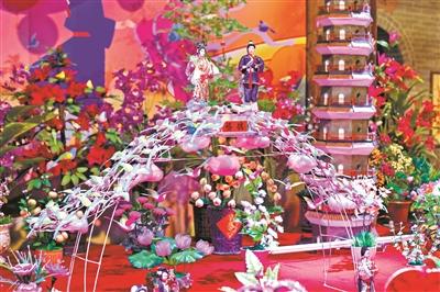 天河珠村明德堂內的乞巧作品“鵲橋”