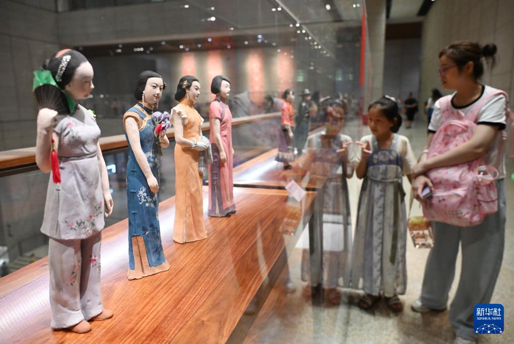 8月7日,中國工藝美術(shù)館展廳舉行的中華歷代服飾泥塑展吸引游客駐足觀看。