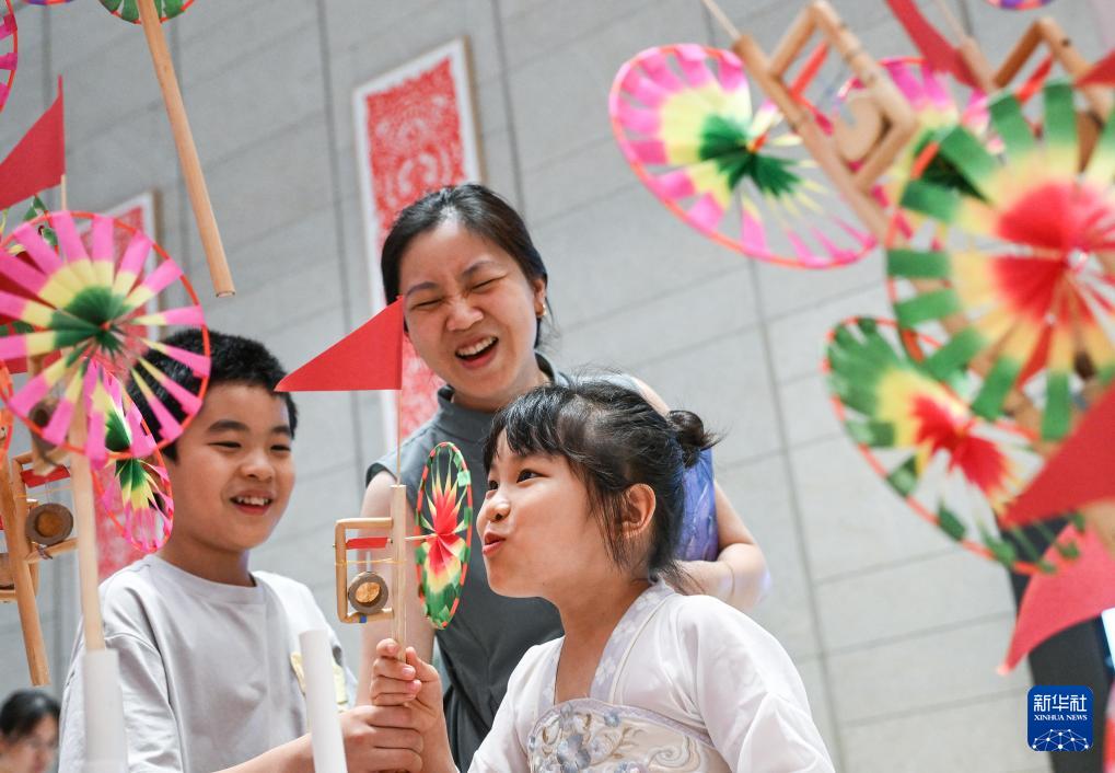 8月7日,小朋友在非遺市集上挑選風(fēng)車玩具。
