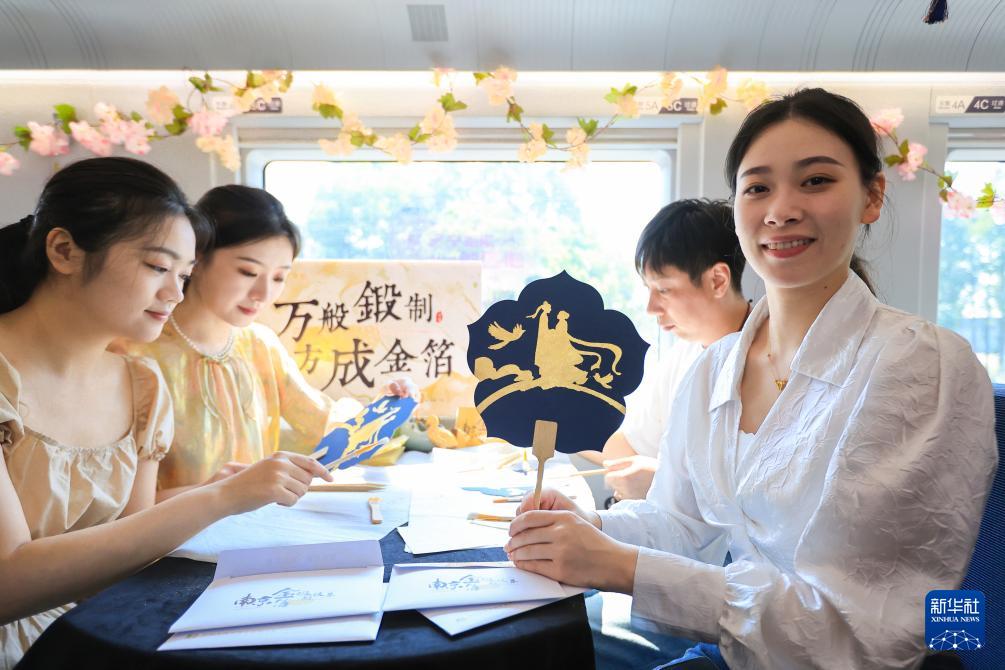 當日,中國鐵路上海局集團有限公司南京客運段在G7393次和G132次高鐵列車上開展“七夕寧相匯 文博敘匠心”主題活動。活動中,來自南京多家文博場館的工作人員進行傳統(tǒng)手工藝展示,并邀請旅客互動體驗,讓旅客在旅途中感受傳統(tǒng)文化的魅力,迎接七夕節(jié)的到來。