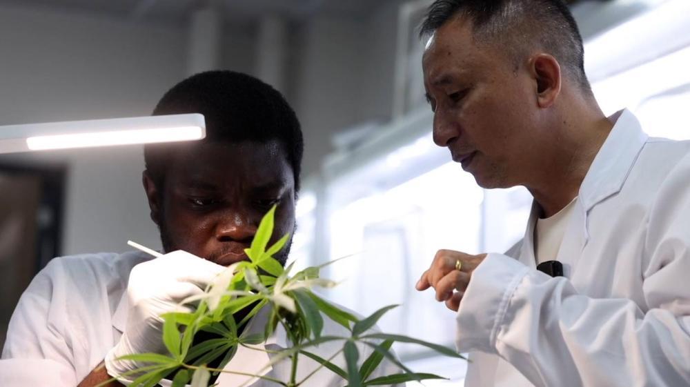格雷戈里的家鄉(xiāng)尼日利亞是世界上最大的木薯生產(chǎn)國。2023年7月,他來到海南開展木薯蟲害綠色綜合防控研究。他希望將自己在中國學(xué)習(xí)到的知識和技術(shù)帶到尼日利亞,為推動當(dāng)?shù)剞r(nóng)業(yè)發(fā)展、促進社會經(jīng)濟繁榮貢獻力量。