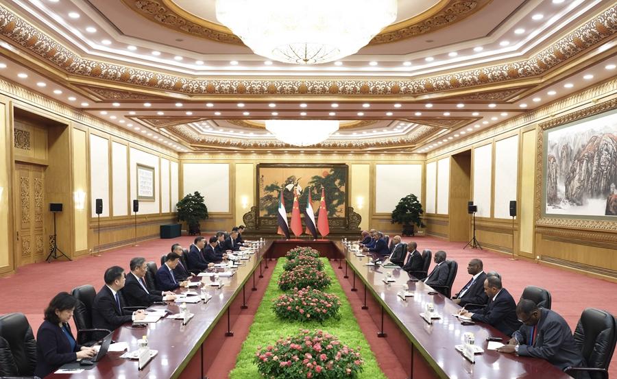 9月6日下午,國家主席習(xí)近平在北京人民大會(huì)堂會(huì)見來華出席中非合作論壇北京峰會(huì)的蘇丹主權(quán)委員會(huì)主席布爾漢。