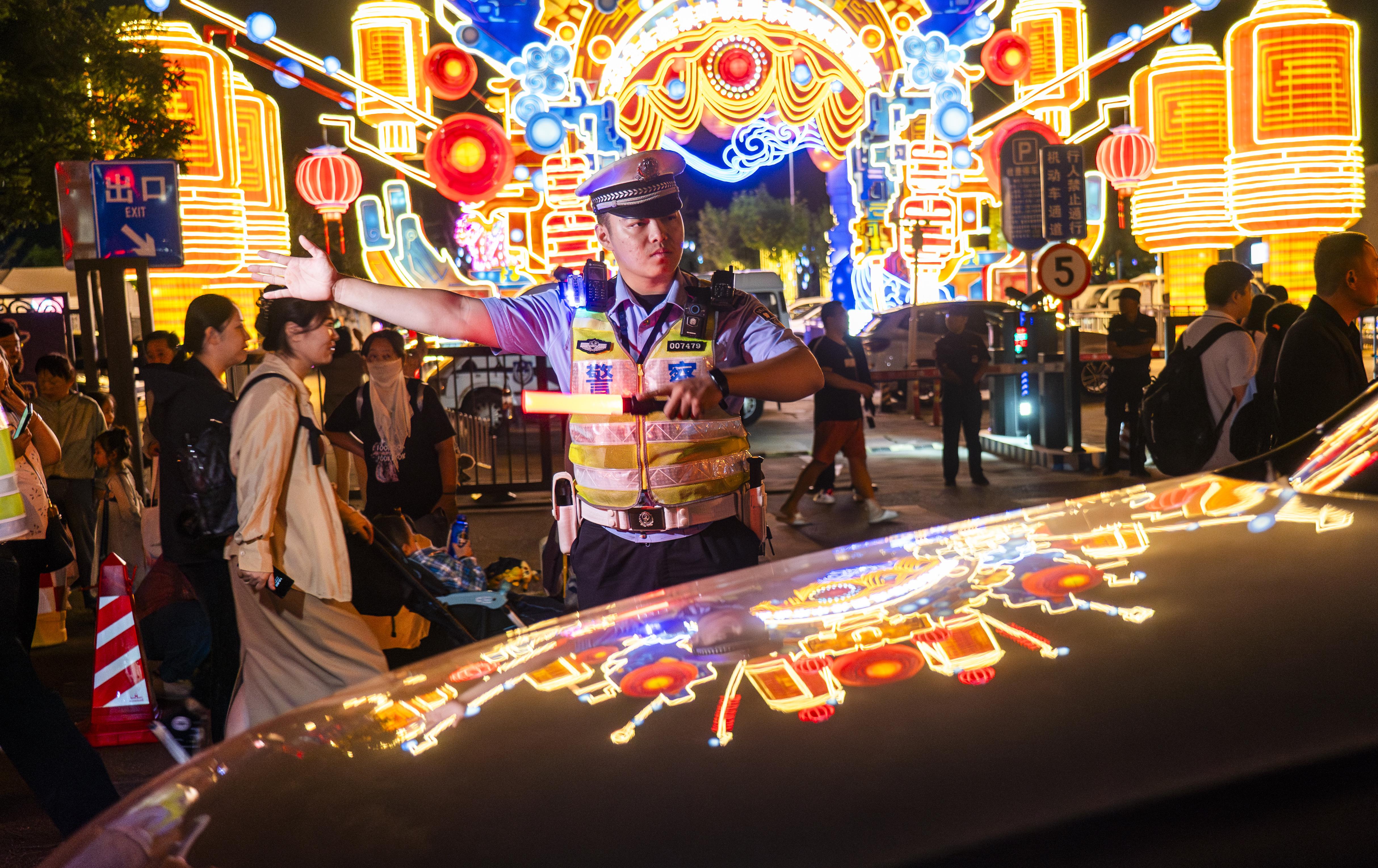 9月15日,北京歷年來最大燈會“京彩燈會”在北京園博園正式啟幕,4萬游客暢游燈海。針對可能出現(xiàn)的大人流情況,北京豐臺警方在燈會的9個(gè)區(qū)域按照不同等級梯次投入安保警力,全力為燈會保駕護(hù)航。