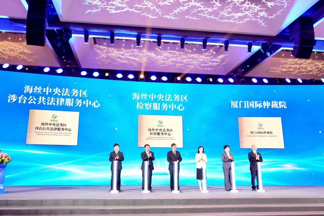 開幕式上,“海絲中央法務(wù)區(qū)檢察服務(wù)中心”“海絲中央法務(wù)區(qū)涉臺公共法律服務(wù)中心”“廈門國際仲裁院”揭牌;海絲中央法務(wù)區(qū)2024年度十大成果發(fā)布:海絲中央法務(wù)區(qū)成為法治化營商環(huán)境“新名片”、法商融合服務(wù)體系加速完善、辦理一批具有示范效應(yīng)的國際商事海事典型案件、搭建涉臺法律服務(wù)新矩陣、警安法務(wù)科技產(chǎn)業(yè)成為法務(wù)區(qū)發(fā)展新引擎、知識產(chǎn)權(quán)保護(hù)應(yīng)用體系拓維升級、域外法查明服務(wù)能力實(shí)現(xiàn)新突破、全國首個(gè)反壟斷審查合規(guī)輔導(dǎo)中心落地運(yùn)行、設(shè)立全國首個(gè)檢察影視孵化示范平臺、打造涉外法治人才培育基地;2024年“一帶一路”法律服務(wù)典型案例發(fā)布。