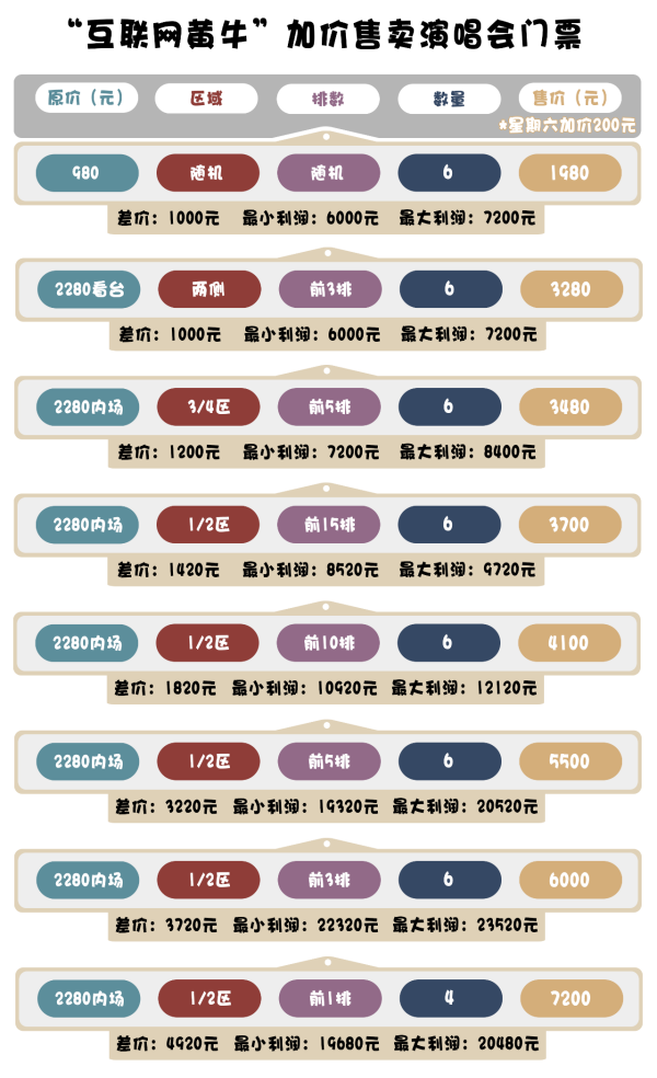 盡管如此,對(duì)于背后有二級(jí)資源的“互聯(lián)網(wǎng)黃牛”來說,售賣“黃?!逼辈⒉皇请y事。以某位在廣東地區(qū)深受歡迎的歌手為例,其預(yù)計(jì)在今年11月舉行多場(chǎng)個(gè)人演唱會(huì),但有粉絲表示,演唱會(huì)的門票仍“一秒售罄”。某二手置物平臺(tái)數(shù)據(jù)顯示,演唱會(huì)門票并非全部售空,部分門票流入“互聯(lián)網(wǎng)黃?!敝?,原價(jià)為2280元的內(nèi)場(chǎng)票,因位置不同被炒至3280元至7200元不等。此外,若趕上演唱會(huì)在星期六舉辦,買家還需要額外支付200元的“熱門時(shí)段搶票費(fèi)用”。面對(duì)“一人一證”的入場(chǎng)機(jī)制,“互聯(lián)網(wǎng)黃?!钡纳馑坪醪⑽词艿接绊憽?/p>