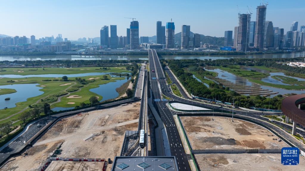 ??12月2日,澳門輕軌從蓮花站開往橫琴站(無人機(jī)照片)。新華社發(fā)(張金加攝)