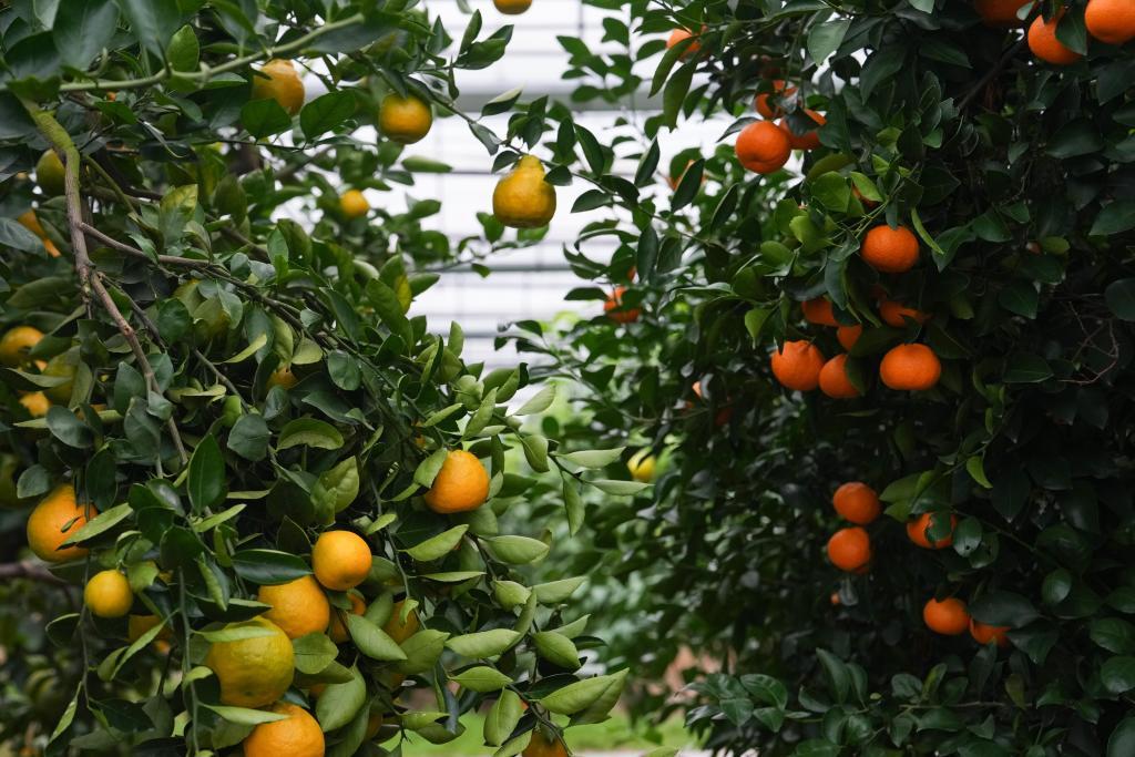 圖為中國(guó)柑橘博覽園大棚內(nèi)的橘樹。新華社記者周佳誼 攝