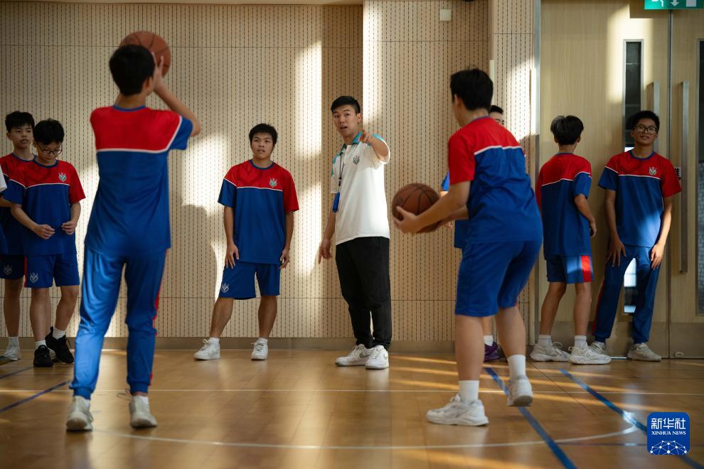 11月12日,澳門中華總商會(huì)附設(shè)青洲中學(xué)體育老師梁駿朗帶領(lǐng)學(xué)生進(jìn)行籃球訓(xùn)練。新華社發(fā)(張金加攝)