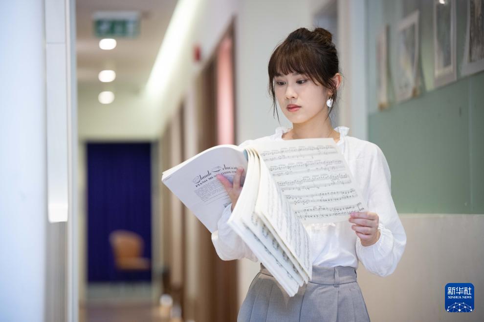 11月12日,澳門青年音樂(lè)家陳宜在看琴譜。新華社發(fā)(張金加攝)