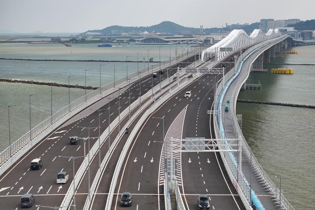 2024年10月1日拍攝的澳門大橋(無人機(jī)照片)。新華社發(fā)(梁建華 攝)