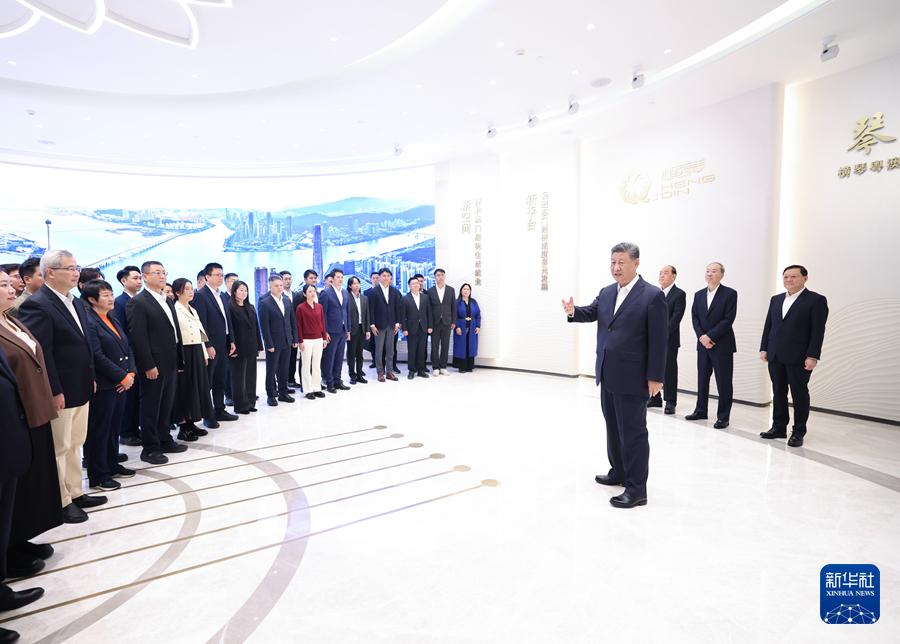 12月19日上午,中共中央總書(shū)記、國(guó)家主席、中央軍委主席習(xí)近平在澳門(mén)特別行政區(qū)行政長(zhǎng)官賀一誠(chéng)陪同下,來(lái)到橫琴粵澳深度合作區(qū)考察。這是習(xí)近平在橫琴天沐琴臺(tái)展示廳考察時(shí),同參與橫琴粵澳深度合作區(qū)規(guī)劃、建設(shè)、管理、服務(wù)等各方面代表親切交流。