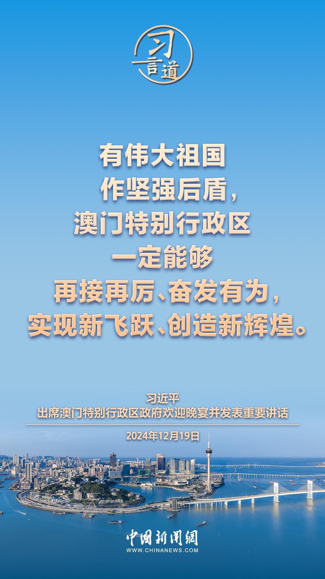 國家主席習近平19日晚出席澳門特別行政區(qū)政府歡迎晚宴并發(fā)表重要講話。習近平指出——