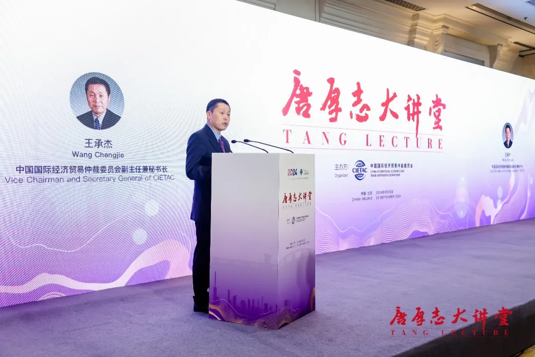 王承杰秘書長在開場致辭中表示,唐厚志大講堂是為了紀(jì)念我國仲裁事業(yè)的重要奠基人和開拓者唐厚志先生而設(shè)立。近年來,黨和國家高度重視并積極推動(dòng)仲裁事業(yè)發(fā)展。今年7月黨的二十屆三中全會通過的《中共中央關(guān)于進(jìn)一步全面深化改革、推進(jìn)中國式現(xiàn)代化的決定》,更是高度重視、四次提及仲裁,并對健全國際商事仲裁制度、培育國際一流仲裁機(jī)構(gòu)作出專門部署、提出明確要求。唐老多年來倡導(dǎo)、推動(dòng)我國仲裁事業(yè)發(fā)展的不懈努力和重大貢獻(xiàn)在新時(shí)代久久回響。