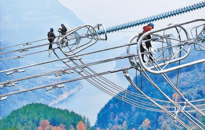 ——建設(shè)險(xiǎn),湍急大河上架線(xiàn)。