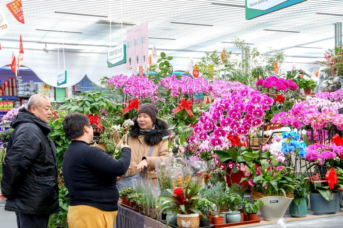 蝴蝶蘭、君子蘭、紅掌、鳳梨、寶蓮燈……近日,記者在北京花卉交易中心看到各式各樣的年宵花已經“就位”。市民們在花海中選購心儀的花卉,迎接新春的到來。