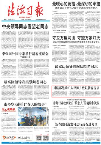 本報(bào)北京1月26日訊 記者趙婕 1月26日,司法部召開(kāi)律師代表座談會(huì),聽(tīng)取對(duì)律師工作的意見(jiàn)建議,向全國(guó)廣大律師致以新春祝福,勉勵(lì)大家深入踐行習(xí)近平法治思想,做黨和人民滿意的好律師。黨組書(shū)記、部長(zhǎng)賀榮,黨組成員、副部長(zhǎng)王振江出席會(huì)議。