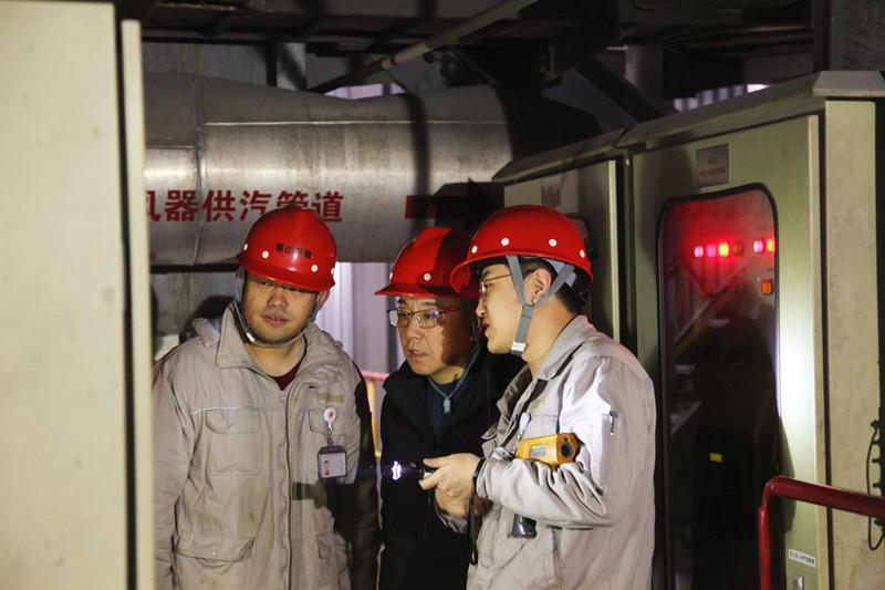 圖為記者(中)跟隨塔山發(fā)電公司員工進(jìn)行巡檢。 本報通訊員 樊晶璟 攝