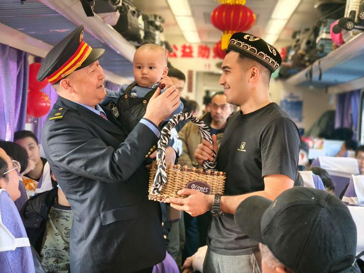 “列車巴扎開市啦!”1月25日早9點(diǎn),祖國大西北,7558次“和田玉龍?zhí)枴绷熊囬_出新疆和田站。沒多久,12號(hào)車廂里就傳來列車長(zhǎng)坡拉提汗的吆喝聲。車廂里立馬熱鬧起來,售賣農(nóng)副產(chǎn)品的吆喝聲、旅客的笑聲和交談聲奏響了歡樂的旋律……