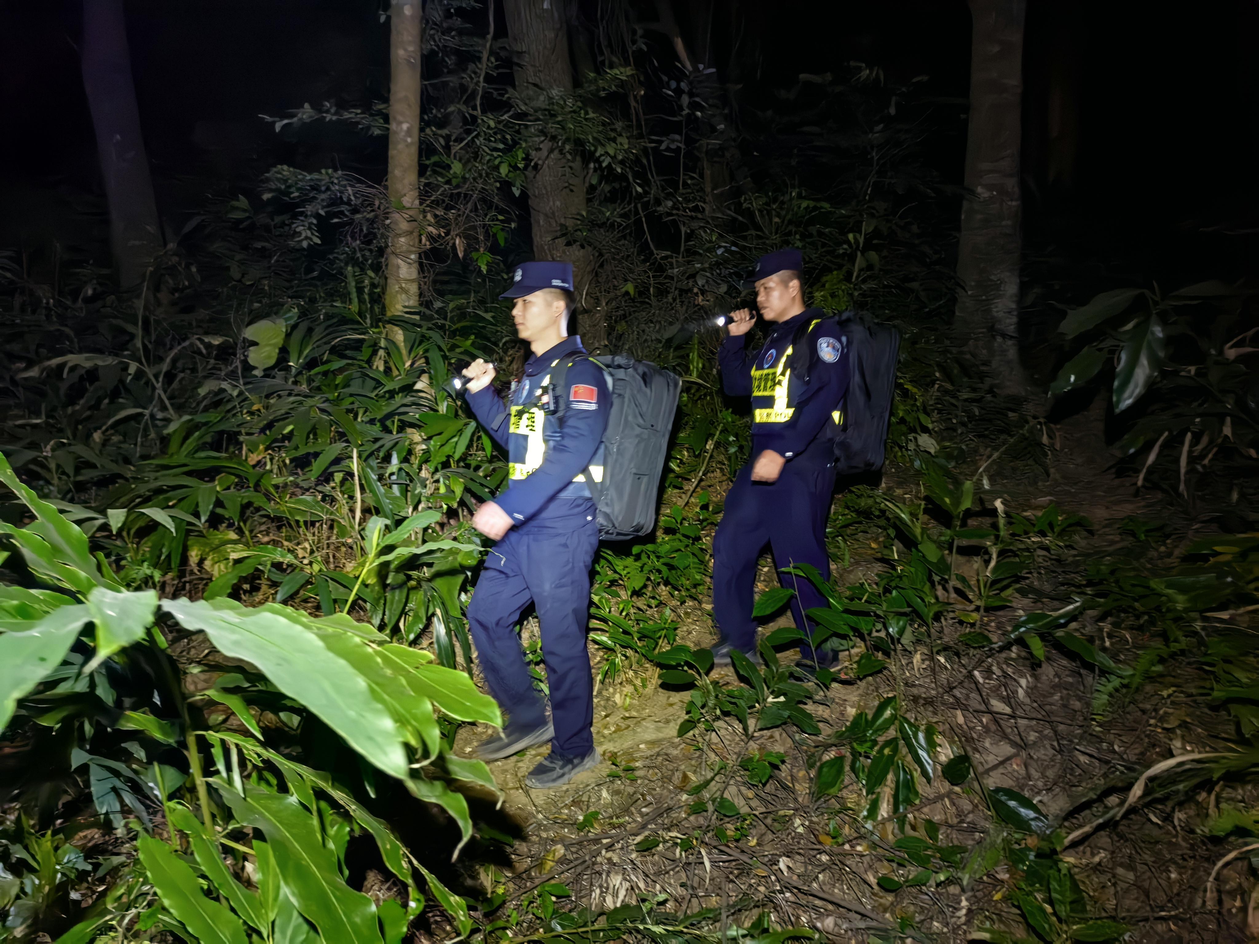 去年12月11日深夜,大青山警務室獲悉一條重要工作信息,一伙偷渡分子企圖從大青山附近偷渡出境。傅彬和同事莫璧成立即在重要路段設卡攔截,雖然發(fā)現目標車輛但車內并無其他人員。民警根據工作經驗判斷,該車可能已讓可疑人員下車離開。隨即,莫璧成立即聯系護邊員、網格員等群眾力量對附近區(qū)域進行搜索。