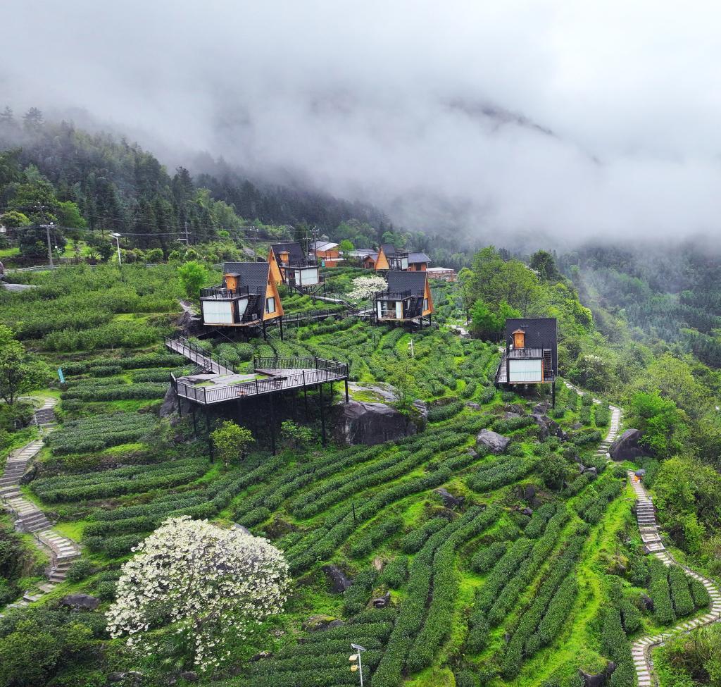 “除了這一處,我建在不遠處茶園里的木屋,早在春節(jié)前半個月就訂出去了。兩處民宿共36個房間,從正月初一直到元宵節(jié),全都預約客滿?!眲⒏Ye說,他的民宿已開了4年。