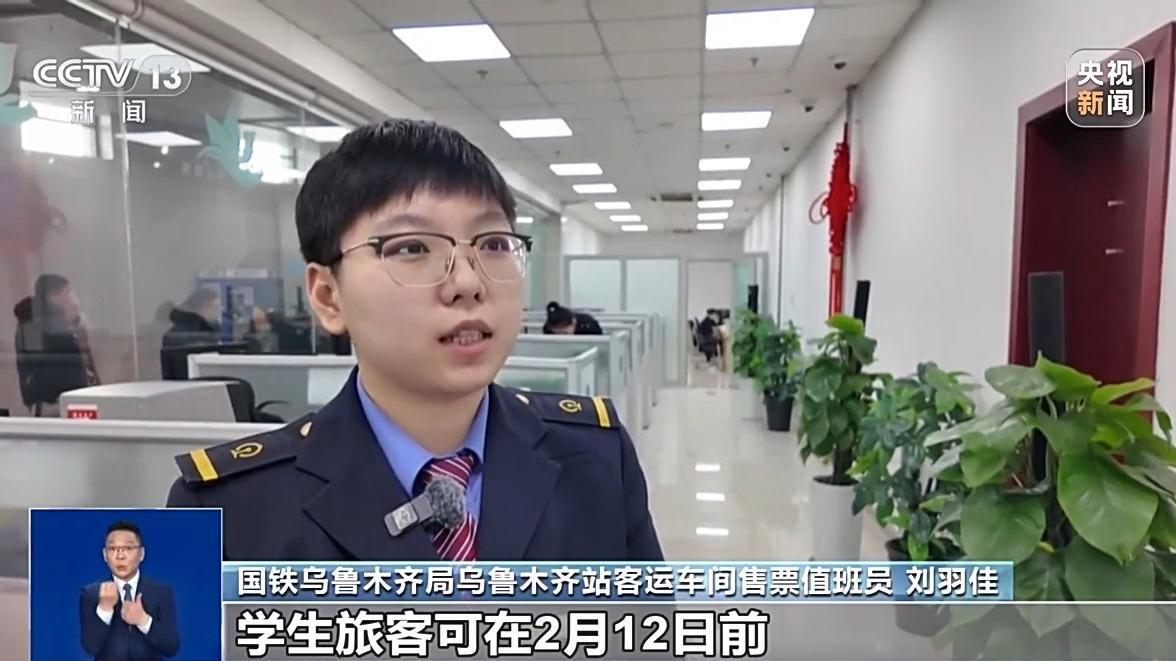 國鐵烏魯木齊局烏魯木齊站客運車間售票值班員 劉羽佳:學生旅客可在2月12日前,預約購買2月28日(前)的火車票,家庭居住地與學校所在地不在同一城市,已通過學生優(yōu)惠資質核驗,且有剩余優(yōu)惠次數的學生,都可以在學生購票專區(qū)購票。