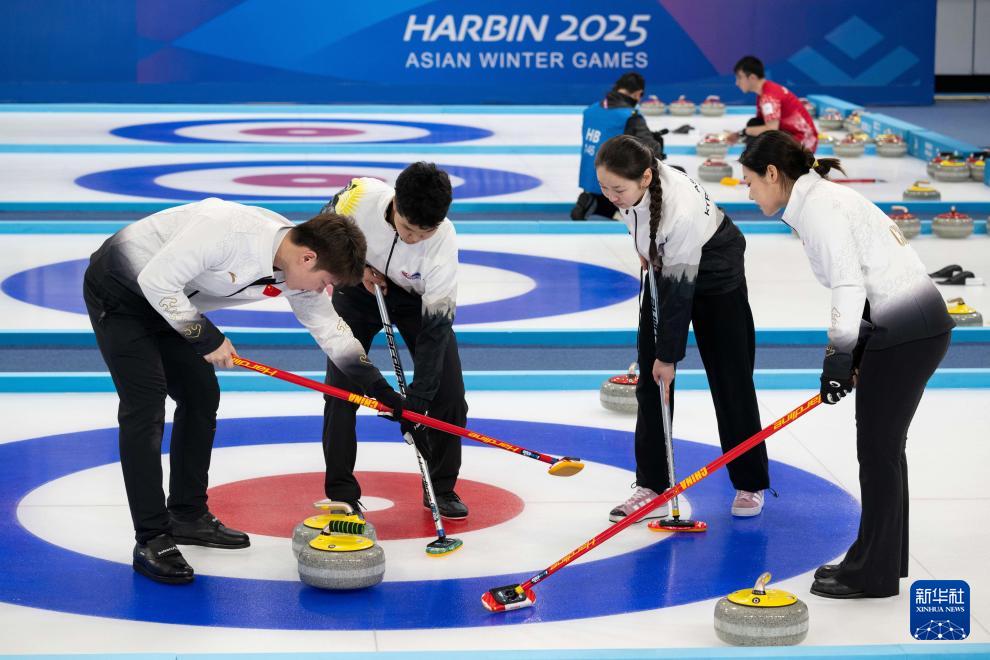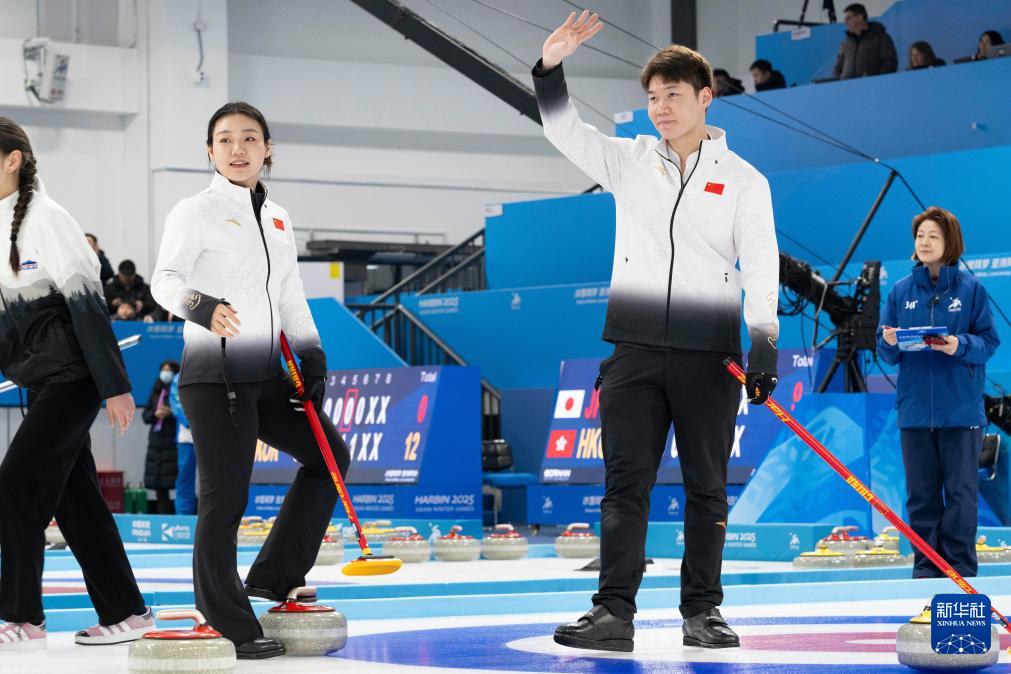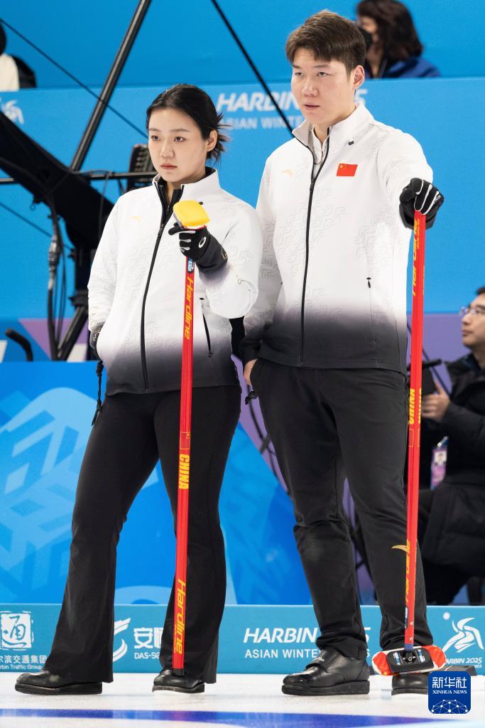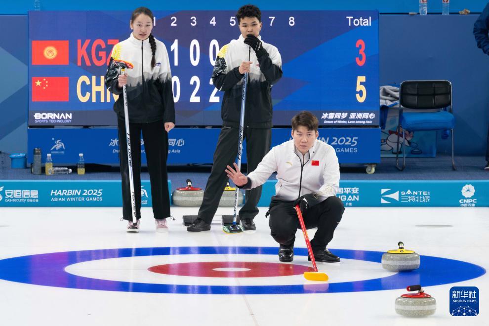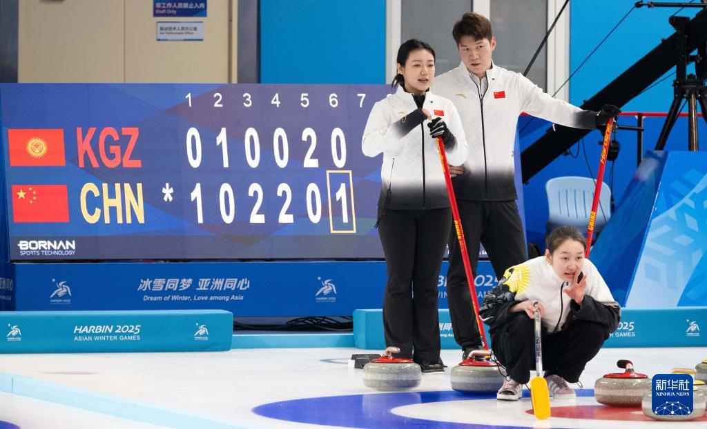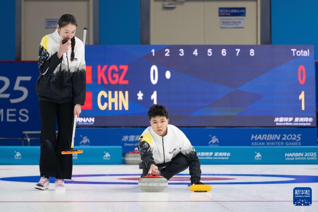 當(dāng)日,在哈爾濱舉行的2025年第九屆亞冬會冰壺混雙循環(huán)賽B組第3輪比賽中,中國隊8比3戰(zhàn)勝吉爾吉斯斯坦隊。