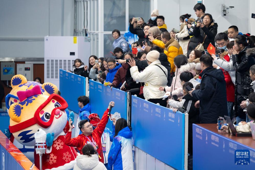 2月5日,第九屆亞冬會吉祥物與觀眾互動。
