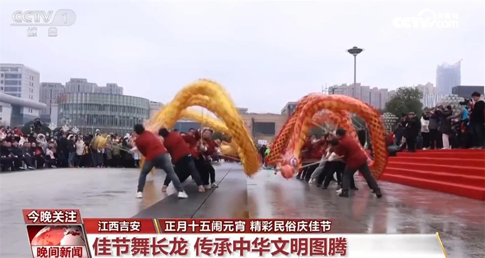 在江西吉安,一場元宵龍舞展演展示活動(dòng)正在熱鬧上演。來自全省22支龍燈代表隊(duì)及吉安本土近40個(gè)國家級、省級非遺項(xiàng)目輪番登場,把節(jié)日氛圍瞬間點(diǎn)燃。點(diǎn)睛后的300米長龍精神抖擻、神采奕奕,160多名表演者舞出了巨龍的精氣神,歡呼聲、喝彩聲此起彼伏。造型精美、各式各樣、色彩斑斕的花燈,吸引了許多市民駐足、拍照留念。