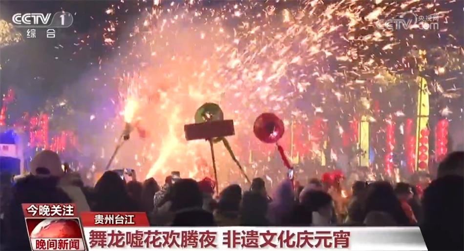 而在貴州省臺(tái)江縣,一場規(guī)模盛大的舞龍噓花在這里上演。舞龍噓花是元宵節(jié)苗族的習(xí)俗,也是我國非物質(zhì)文化遺產(chǎn)項(xiàng)目。舞龍隊(duì)員們赤膊上陣舞動(dòng)長龍,周圍群眾用裝滿火藥的噓花筒向龍身噴射焰火。在火光中,金龍上下翻騰,舞龍噓花也被稱為“勇敢者的游戲”。