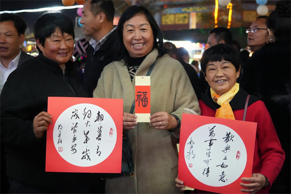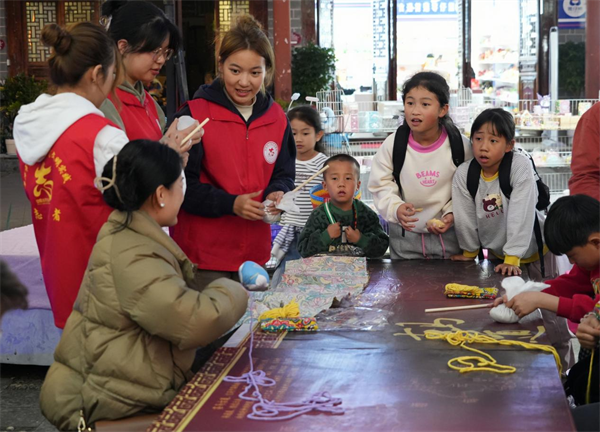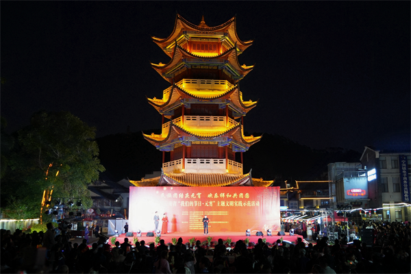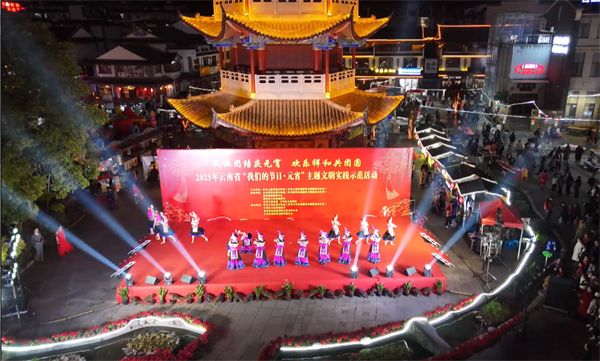 在普洱古鎮(zhèn),豐富多樣的文明實踐活動同步開展,書法愛好者以筆為媒,飽蘸深情,精心書寫并送上承載著“祝?!薄捌桨病薄敖】怠钡哪珜?。當社會主義核心價值觀、傳統(tǒng)文化以及移風易俗理念巧妙融入謎面時,群眾穿梭于燈謎中,答得不亦樂乎。此外,燈籠制作、糖畫制作、烤茶、拓印、染紅蛋、舂粑粑等體驗環(huán)節(jié)吸引了不少群眾駐足?,F(xiàn)場,各族群眾身著盛裝,手拉手圍著篝火跳舞,歡聲笑語賀佳節(jié),描繪出中華民族一家親的美好畫面,營造歡樂祥和的節(jié)日氛圍。