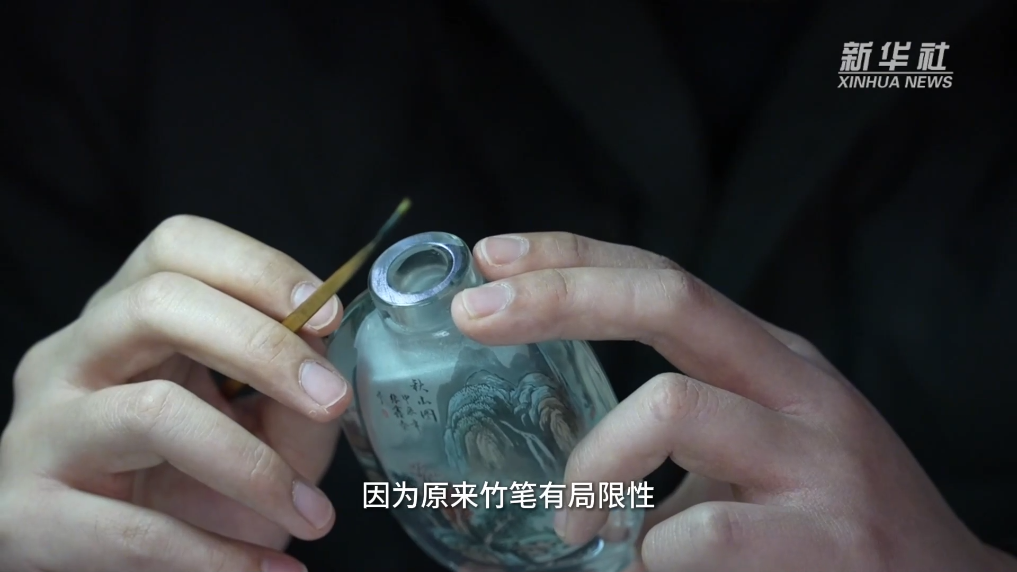 作為家族中的第三代傳承人,張鵬的兒子張鑫泰正在用年輕人的方式為內(nèi)畫注入新的活力,26歲的他已經(jīng)是淄博市工藝美術(shù)大師。