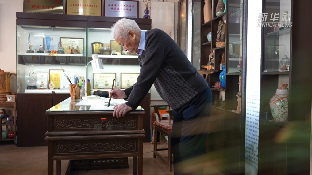 在山東省淄博市博山區(qū)內(nèi)畫張藝術(shù)館,81歲的張廣忠正在揮毫潑墨。60多年的藝術(shù)生涯中,每天練習(xí)國畫已成為他生活的一部分。