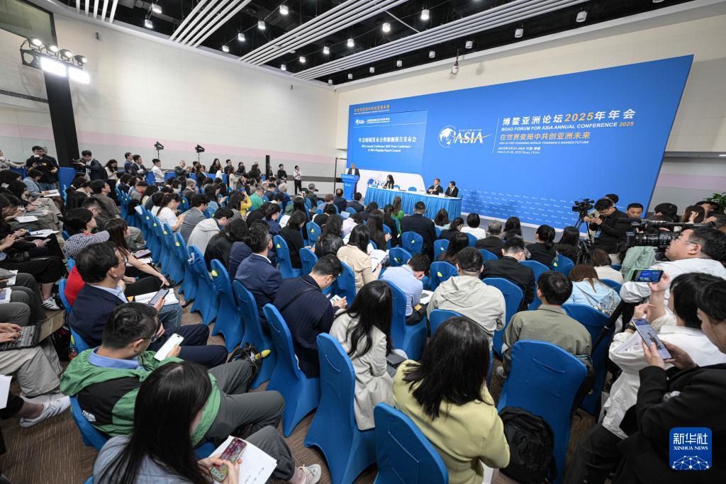 3月25日在海南博鰲拍攝的博鰲亞洲論壇2025年年會(huì)新聞發(fā)布會(huì)暨旗艦報(bào)告發(fā)布會(huì)現(xiàn)場。