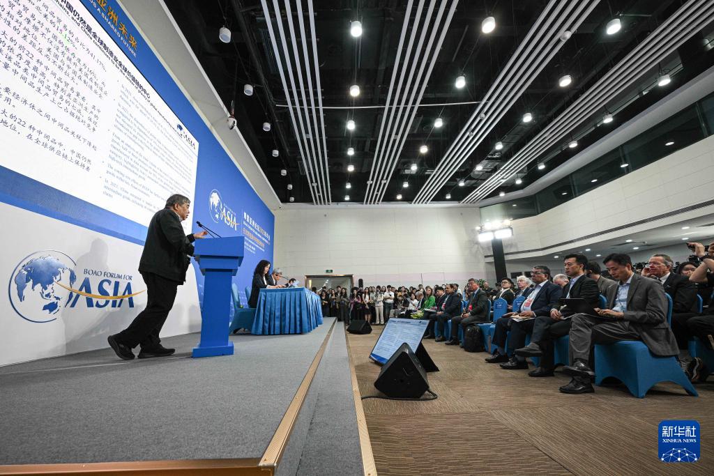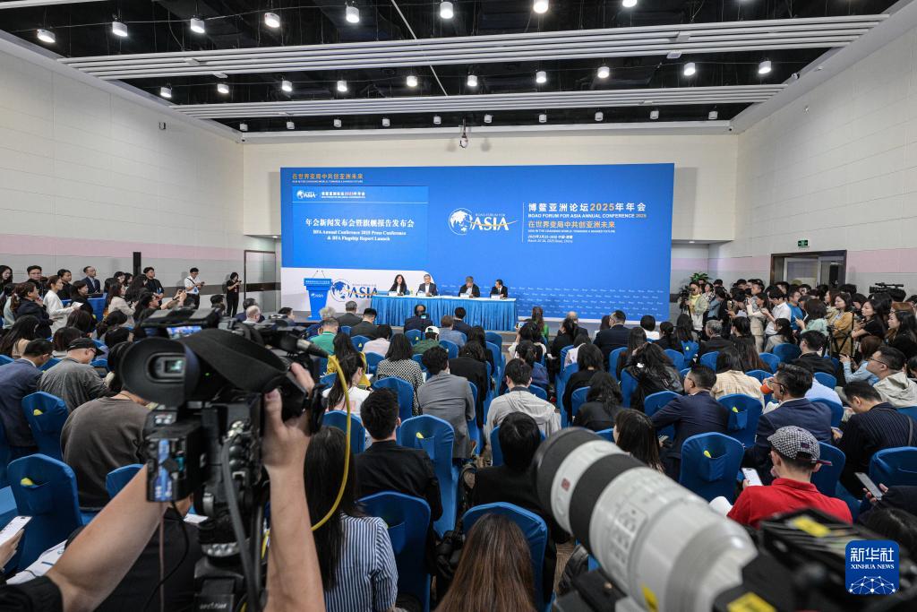 3月25日在海南博鰲拍攝的博鰲亞洲論壇2025年年會新聞發(fā)布會暨旗艦報告發(fā)布會現場。