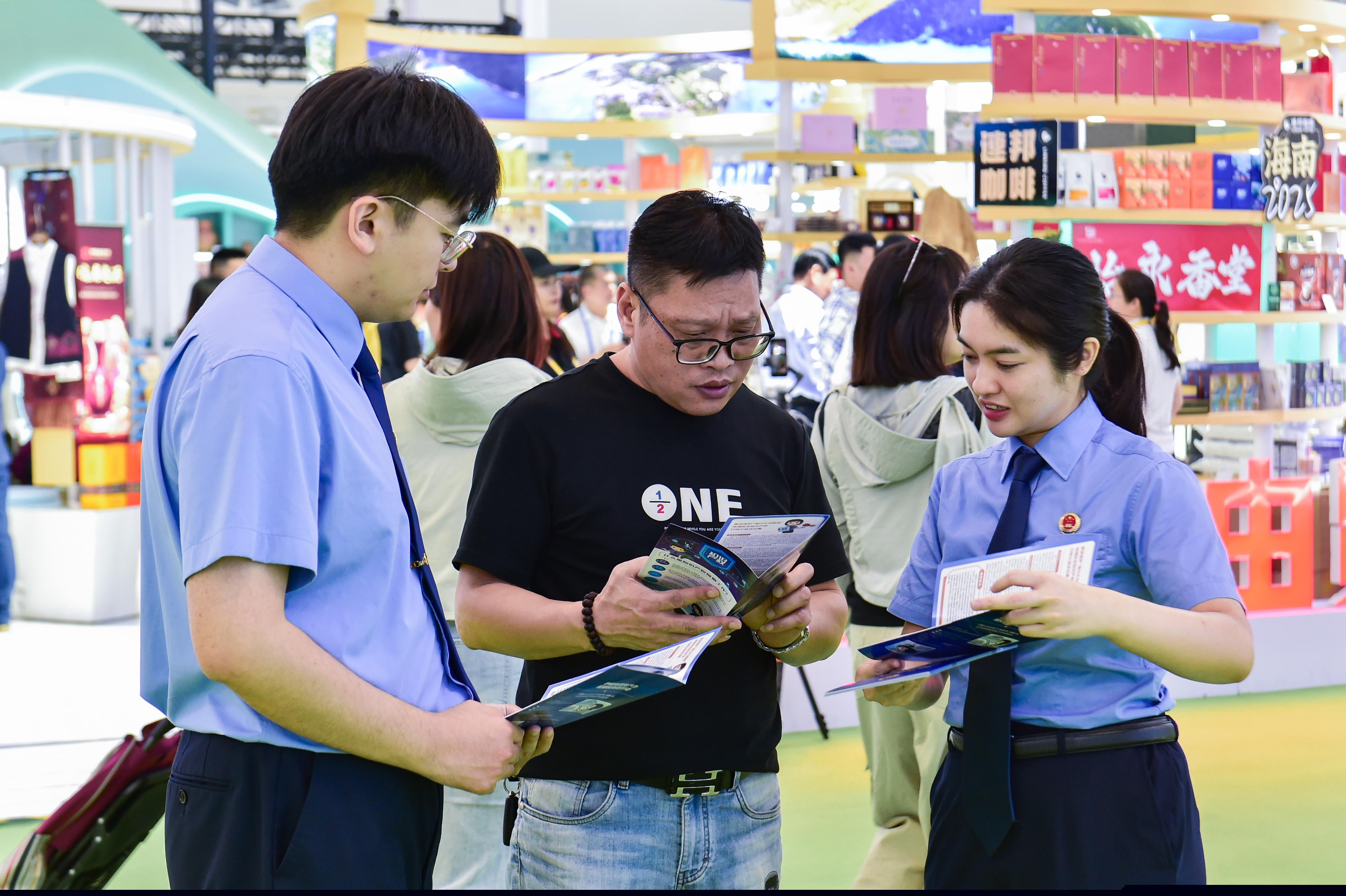 作為消博會人員最密集的區(qū)域,登陸大廳是消費者進入展館的“第一站”。本屆消博會,省檢察院指派省檢察院第一分院和海口市秀英區(qū)檢察院業(yè)務骨干進駐登陸大廳知識產(chǎn)權(quán)保護工作站,設(shè)立“知識產(chǎn)權(quán)檢察服務專區(qū)”,開展知識產(chǎn)權(quán)保護服務和普法宣傳工作。同時,檢察干警還深入各場館,主動與參展客商進行交流,深入了解知識產(chǎn)權(quán)保護方面新需求、新動向,并針對較為關(guān)注的商標保護、商標侵權(quán)維權(quán)、侵犯商業(yè)秘密等問題,逐一耐心細致解答,精準提供快捷高效的維權(quán)途徑和解決方案,為消博會創(chuàng)造法治化營商環(huán)境。