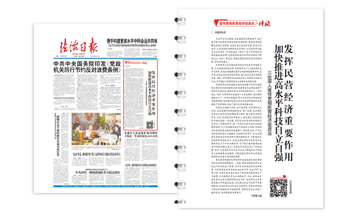 民營企業(yè)創(chuàng)新活力強(qiáng)、生產(chǎn)效率高、對市場需求反應(yīng)快,往往能夠積極擁抱新技術(shù)、敢于試錯(cuò)。這些都是民營企業(yè)在科技創(chuàng)新領(lǐng)域勇立潮頭、奮力爭先的優(yōu)勢所在。當(dāng)前,民營經(jīng)濟(jì)在市場準(zhǔn)入、要素獲取、服務(wù)供給等方面還面臨一些問題,民營企業(yè)自身創(chuàng)新發(fā)展能力也存在一些薄弱環(huán)節(jié)。進(jìn)一步優(yōu)化民營企業(yè)科技創(chuàng)新制度環(huán)境,對于加快推進(jìn)高水平科技自立自強(qiáng)、促進(jìn)經(jīng)濟(jì)社會(huì)高質(zhì)量發(fā)展具有重要意義。特別是當(dāng)前,中美在高科技領(lǐng)域競爭日趨激烈,在這樣的背景下,充分發(fā)揮好民營經(jīng)濟(jì)在科技創(chuàng)新方面的獨(dú)特優(yōu)勢,不斷激發(fā)民營經(jīng)濟(jì)科技創(chuàng)新活力,更好發(fā)揮民營經(jīng)濟(jì)在培育和發(fā)展新質(zhì)生產(chǎn)力中的關(guān)鍵作用,對于我們最終贏得這場競爭的勝利意義重大。民營經(jīng)濟(jì)促進(jìn)法設(shè)立“科技創(chuàng)新”專章,正是貫徹習(xí)近平總書記關(guān)于推進(jìn)高水平科技自立自強(qiáng)重要論述精神、不斷拓展民營經(jīng)濟(jì)在科技創(chuàng)新領(lǐng)域的發(fā)展空間的制度考量。