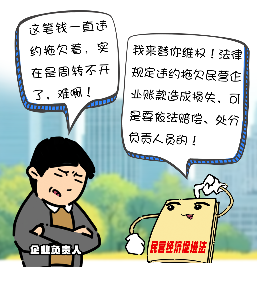 第七十三條 國家機關(guān)、事業(yè)單位、國有企業(yè)違反法律、行政法規(guī)規(guī)定或者合同約定,拒絕或者拖延支付民營經(jīng)濟組織賬款,地方各級人民政府及其有關(guān)部門不履行向民營經(jīng)濟組織依法作出的政策承諾、依法訂立的合同的,由有權(quán)機關(guān)予以糾正,造成損失的,依法予以賠償;造成不良后果或者影響的,對負(fù)有責(zé)任的領(lǐng)導(dǎo)人員和直接責(zé)任人員依法給予處分。
