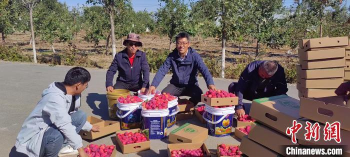 王志剛參與遼塔農(nóng)業(yè)科技示范園果樹品種采收、測產(chǎn)。 劉國宇 攝