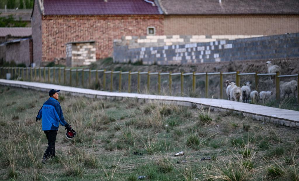 5月12日,李世翔在海原縣甯韋堡巡查(無人機照片)。