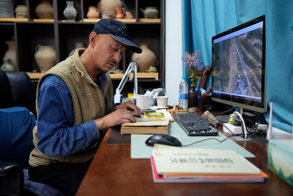 5月12日,李世翔在工作室參考古籍,標記他實地考察的一處古城遺址。