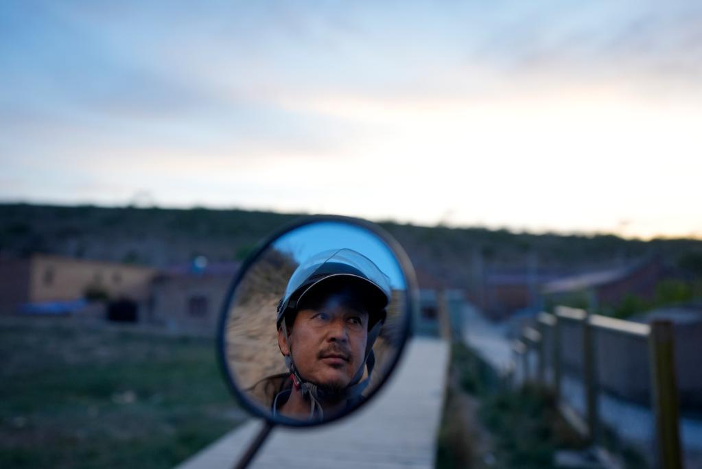 5月11日,李世翔騎摩托車巡查位于海原縣的全國重點文物保護單位——柳州城址。