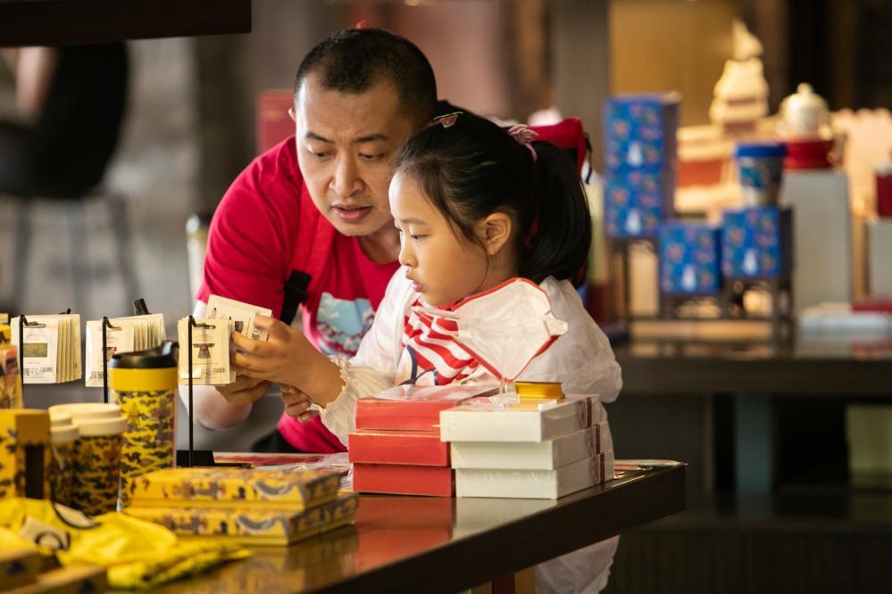 在重慶故宮文物南遷紀(jì)念館的角樓咖啡店,顧客在選購文創(chuàng)產(chǎn)品。新華社記者 儲(chǔ)加音 攝