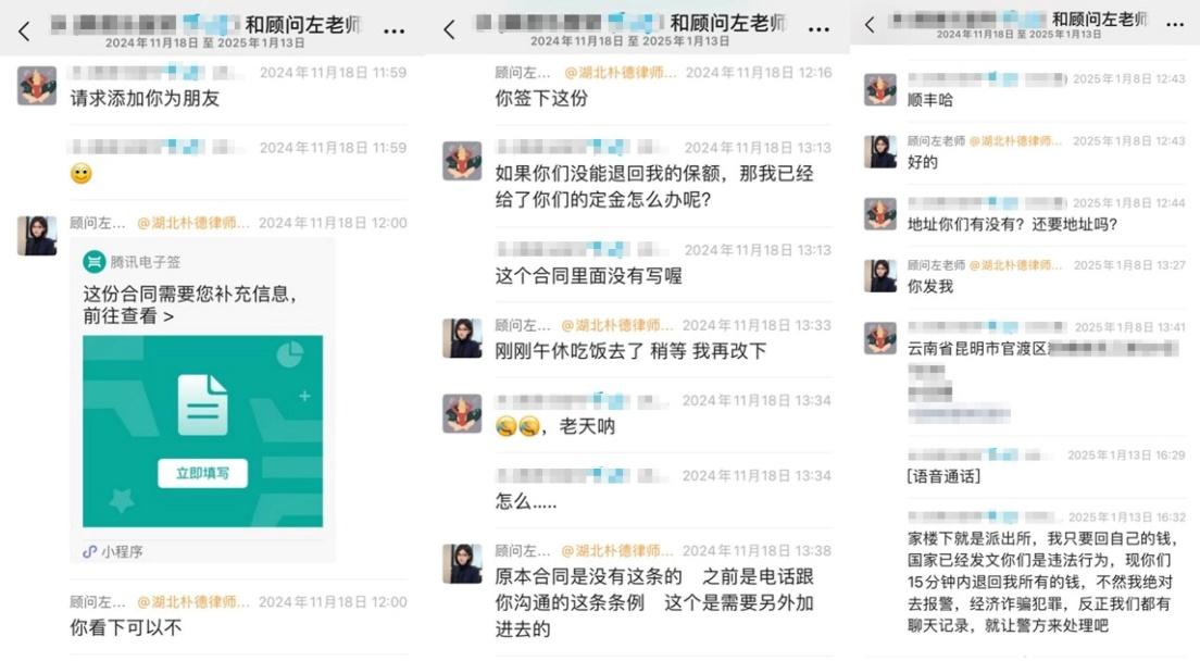 2024年12月,江西客戶S女士在網(wǎng)上看到一則“代理退?!钡膹V告,聲稱“全額退保,不成功不收費”。因當時經(jīng)濟壓力較大,并且缺乏對黑產中介的了解,S女士接觸了該所謂的“專業(yè)代理機構”。在對方的誘導下,客戶以“銷售誤導”等虛假理由投訴保險公司,要求全額退保,同時還向對方支付了4800元作為“定金”。然而后續(xù)幾天,S女士始終沒有等到對方的消息。