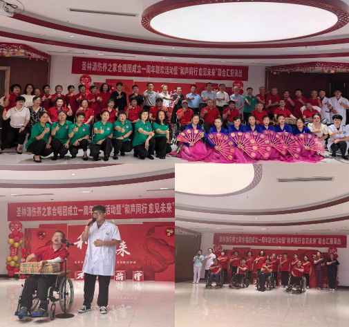 當(dāng)天,30余位合唱團(tuán)成員用歌聲傳遞感恩與力量。在“和聲同行 愈見(jiàn)未來(lái)”周年聯(lián)歡活動(dòng)現(xiàn)場(chǎng),一曲曲《世界贈(zèng)與我的》《南泥灣》《思念》等歌曲余韻悠長(zhǎng),每一個(gè)音符都凝聚著對(duì)黨的感恩、對(duì)政府關(guān)懷的深情告白。這不僅是一場(chǎng)匯報(bào)演出,更展現(xiàn)了工傷重癥失能人員積極向上的精神風(fēng)貌,有效促進(jìn)了他們身心健康的全面提升,點(diǎn)亮了生活新色彩。