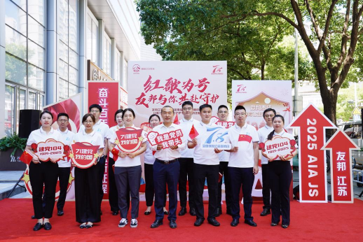 2025年7月1日,在中國共產(chǎn)黨成立104周年之際,友邦人壽保險有限公司江蘇分公司(以下簡稱“友邦江蘇”)在全省12個分支機構(gòu)同步開展“紅歌為號,友邦與你共赴守護”紅歌合唱快閃活動,以激昂的紅歌旋律獻禮黨的生日,同時積極響應2025年“7.8全國保險公眾宣傳日”主題“愛和責任,保險讓生活更美好”,將紅色基因與保險行業(yè)的社會責任深度融合,傳遞守護民生的堅定信念。