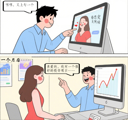或通過婚戀交友平臺與個人確定婚戀關(guān)系,再以“內(nèi)部消息”“特殊資源”等誘騙個人參與投資,引導(dǎo)個人在偽造或仿冒的投資平臺進(jìn)行投資,并以小額投資返利作為誘餌,不斷引導(dǎo)個人加大資金投入,隨后迅速轉(zhuǎn)移資金。