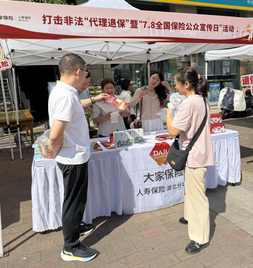 7月5日,在2025年“7.8全國保險公眾宣傳日”來臨之際,大家人壽湖北分公司與武漢市12家金融機構(gòu)一道,冒著酷暑走進武昌區(qū)復(fù)地東湖國際武重社區(qū),積極參加由國家金融監(jiān)督管理總局湖北監(jiān)管局領(lǐng)導(dǎo)、湖北省保險行業(yè)協(xié)會指導(dǎo)、極目新聞主辦的“向非法代理退保說不,我們在行動”宣傳活動。本次活動以打擊非法“代理退?!濒摺?.8全國保險公眾宣傳日”為主題,吸引了眾多社區(qū)居民參與,以豐富多元的形式掀起社區(qū)公眾反詐防騙熱潮。
