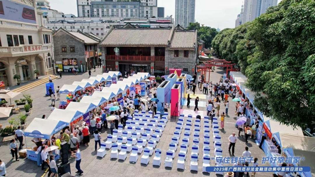 6月15日,廣西金融監(jiān)管局聯(lián)合中共廣西壯族自治區(qū)委員會金融委員會辦公室在南寧市三街兩巷歷史文化街區(qū)主辦2025年廣西防范非法金融活動集中宣傳日活動,聯(lián)合法院、檢察院、公安、市場監(jiān)管、民政等多家政府機關(guān)單位,以多維度、多視角協(xié)同構(gòu)建防非宣傳新格局?;顒右远喾N形式深入社區(qū)、校園、鄉(xiāng)村、商圈、工廠等開展金融知識宣教,單場直播瀏覽量突破10.7萬人次。