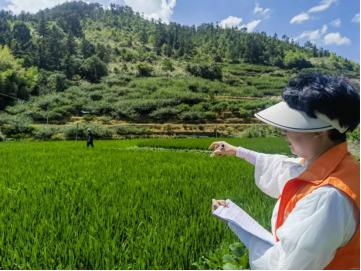 驗(yàn)標(biāo)員曾燕玲的背包里,全縣農(nóng)險(xiǎn)驗(yàn)標(biāo)分布圖已標(biāo)注百余村落坐標(biāo)。密密麻麻的紅點(diǎn),對(duì)應(yīng)著數(shù)千塊分散田地的勘驗(yàn)記錄。在熾烈的陽(yáng)光下,灼熱的田埂仿佛要將鞋底融化。而她和農(nóng)險(xiǎn)伙伴們依舊頂著烈日,每日步行超萬(wàn)步,日均完成8個(gè)村莊的查勘驗(yàn)標(biāo)工作。